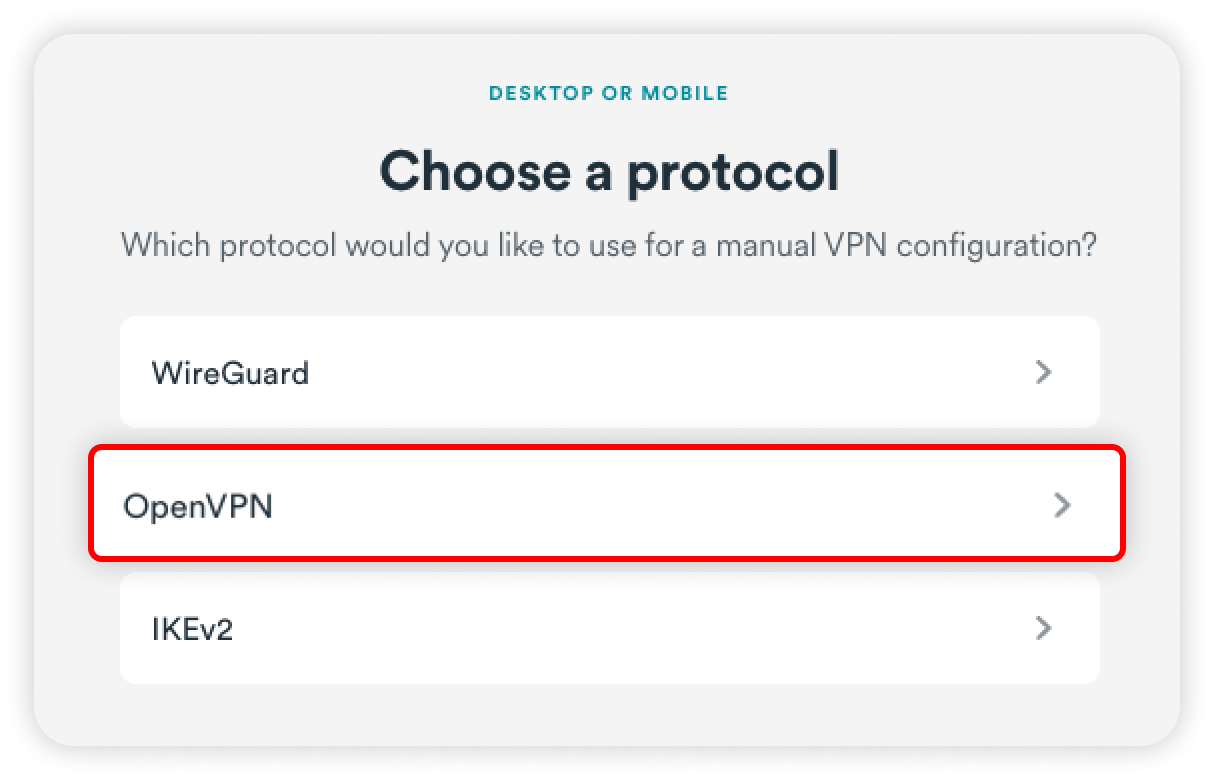 Before setting up OpenVPN, you will need to obtain the credentials for the manual setup and select a server to connect to.