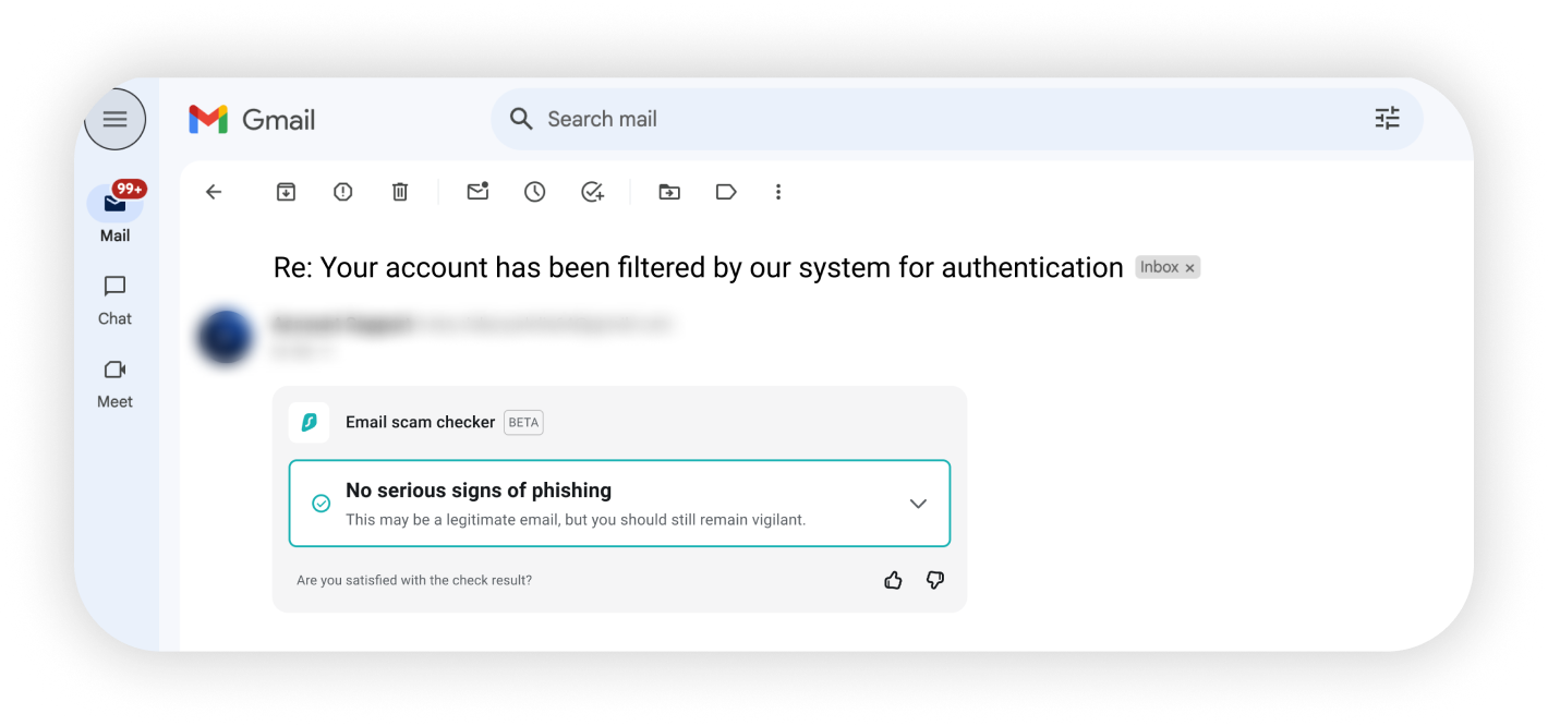 Note: The Email scam checker currently works exclusively with Gmail when accessed at mail.google.com.