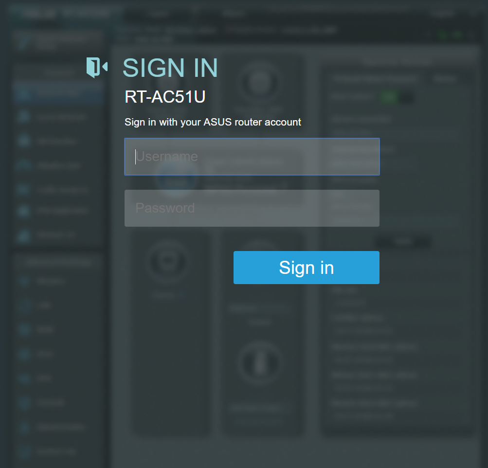 1. Connect to the Control panel of your Asus router. You can access it by entering your Default Gateway address into your browser's URL address bar. By default, it usually is 192.168.1.1