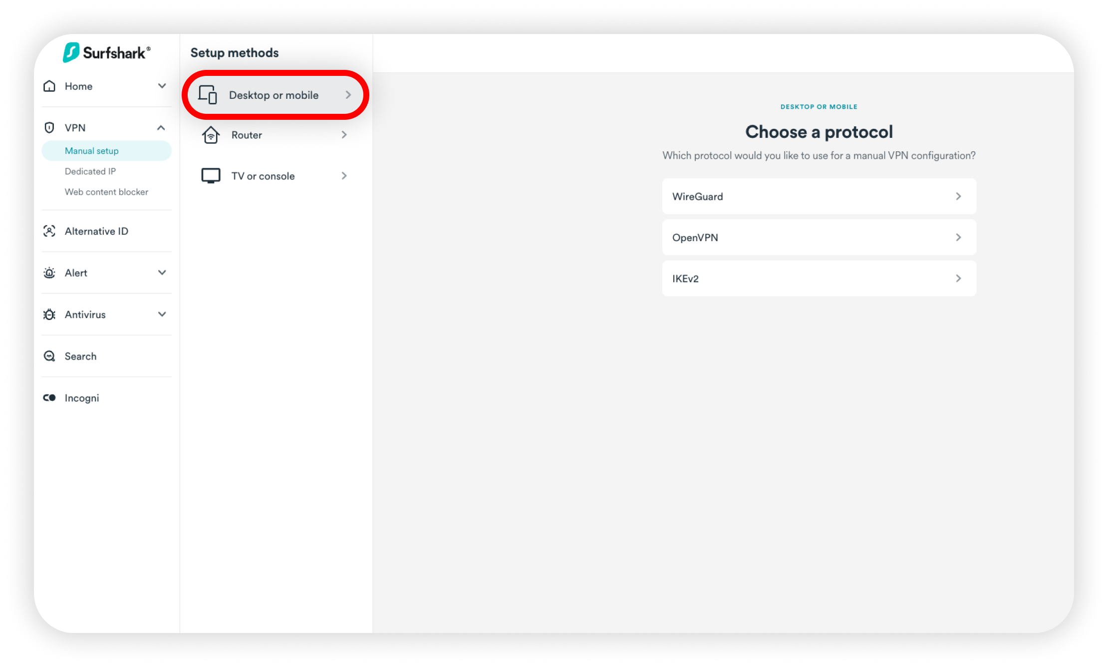 To proceed, you will need a computer running macOS and an active Surfshark subscription. If you don't have one yet, you can find the available plans on Surfshark's pricing page.