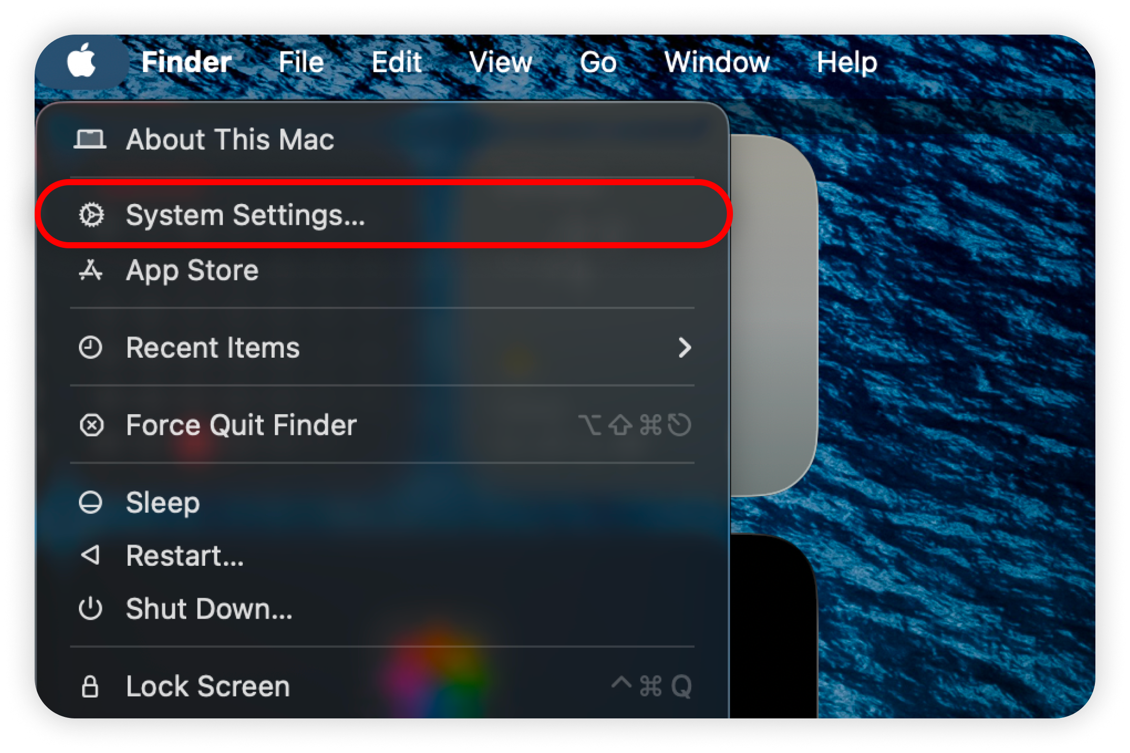 1. Click the Apple menu  and select System Settings: