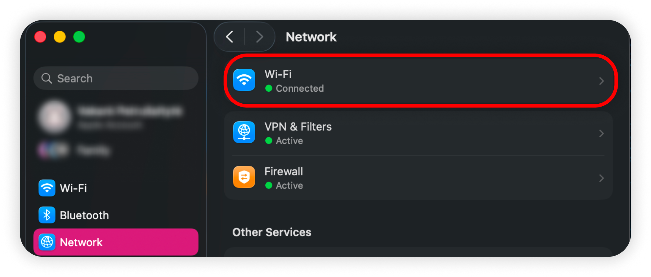 2. Click Network in the left‑hand sidebar:
