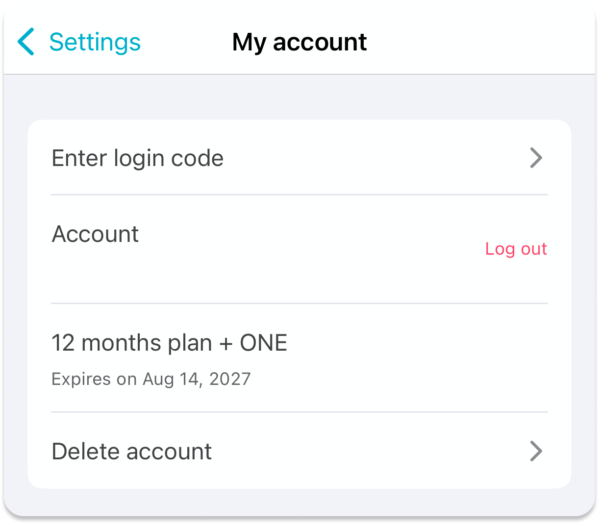 Here, you will find all the information about your subscription, the option to log out, and to delete your account: