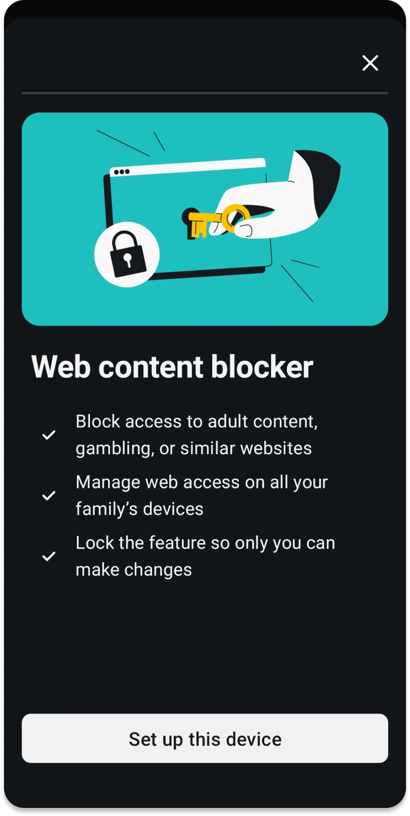 Web content blocker allows you to block access to your chosen website categories, such as adult, drug, gambling, weapon, and even scam websites.