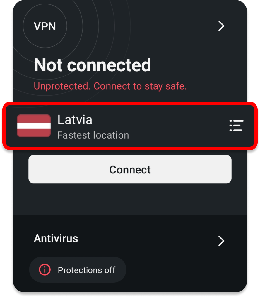 You can start by tapping Connect. By default, your app will connect you to the fasted available location.