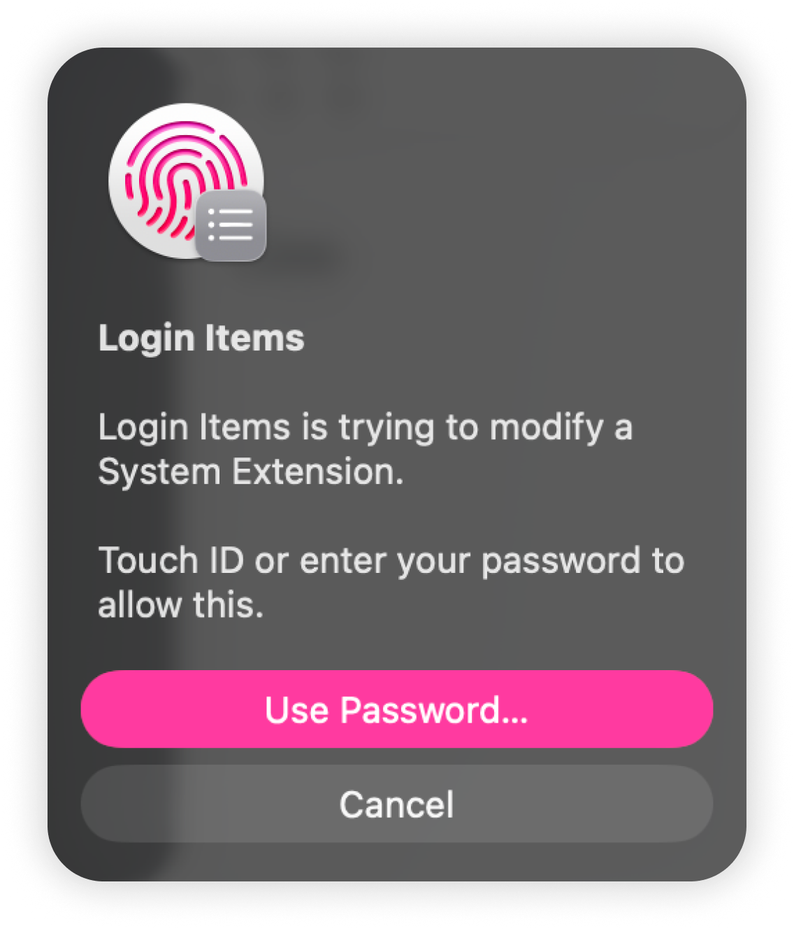 Use your Touch ID or enter your Mac’s password to approve the changes: