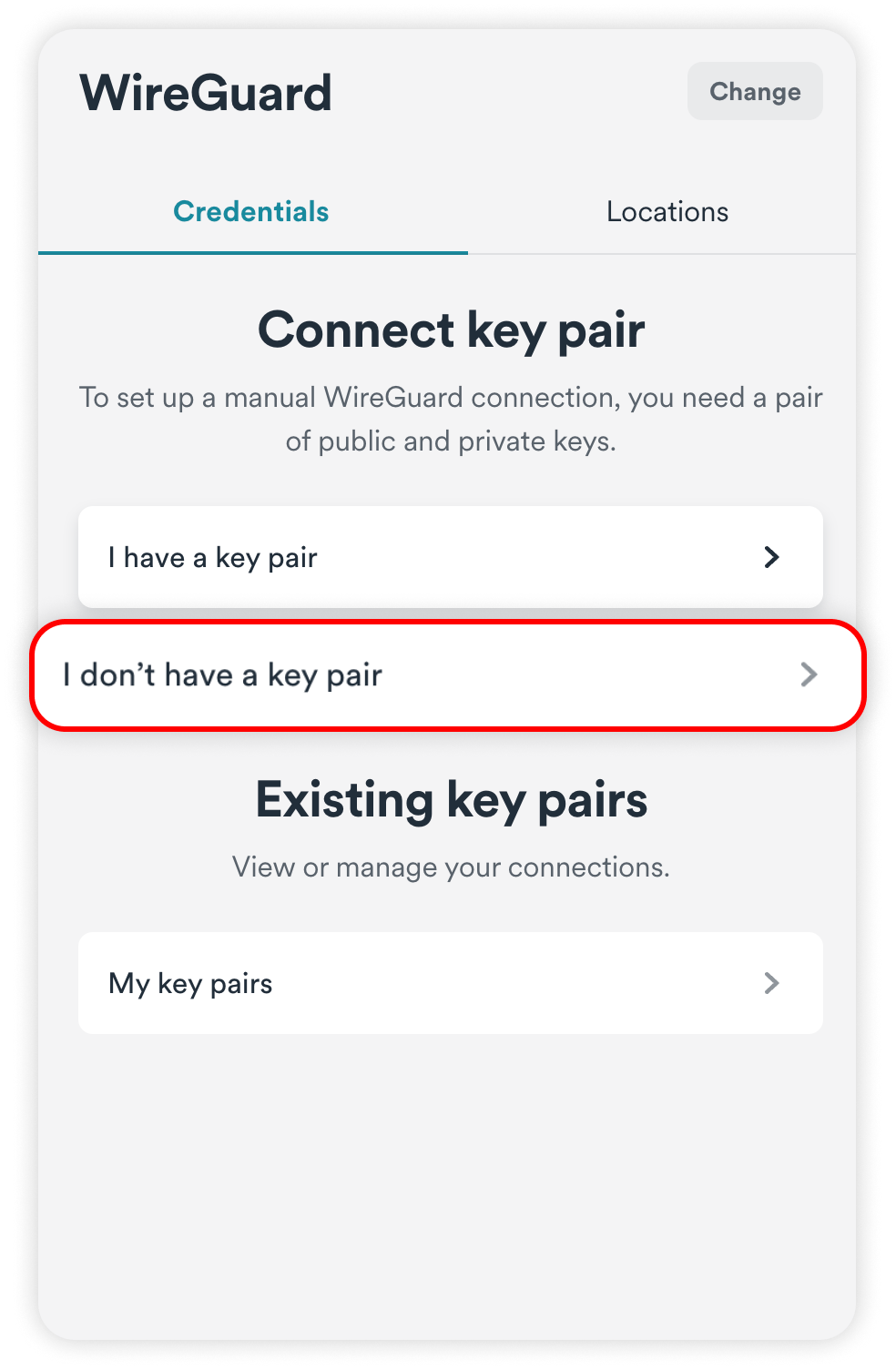 Once there, select I don't have a key pair.