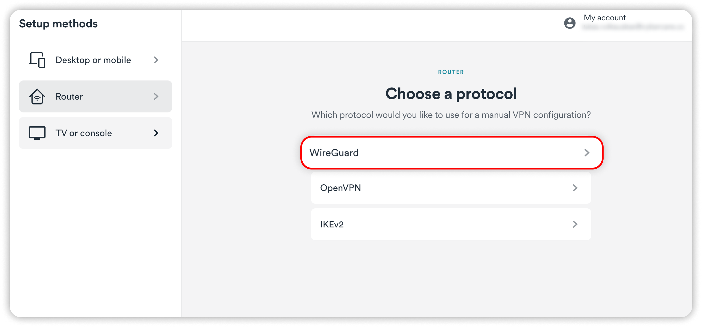 Choose the WireGuard protocol.