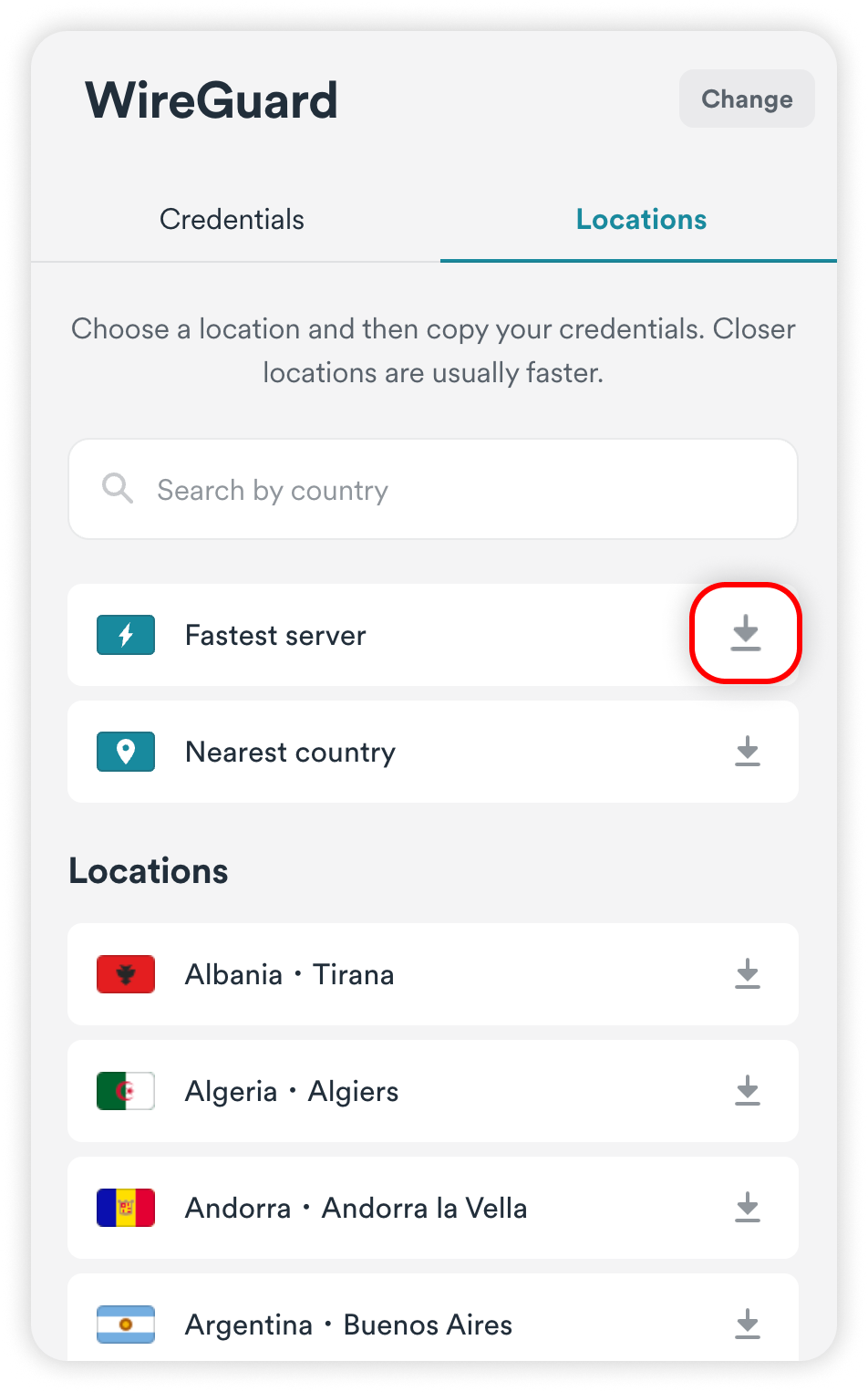 Head to the Locations tab and locate the server that you wish to connect to.
